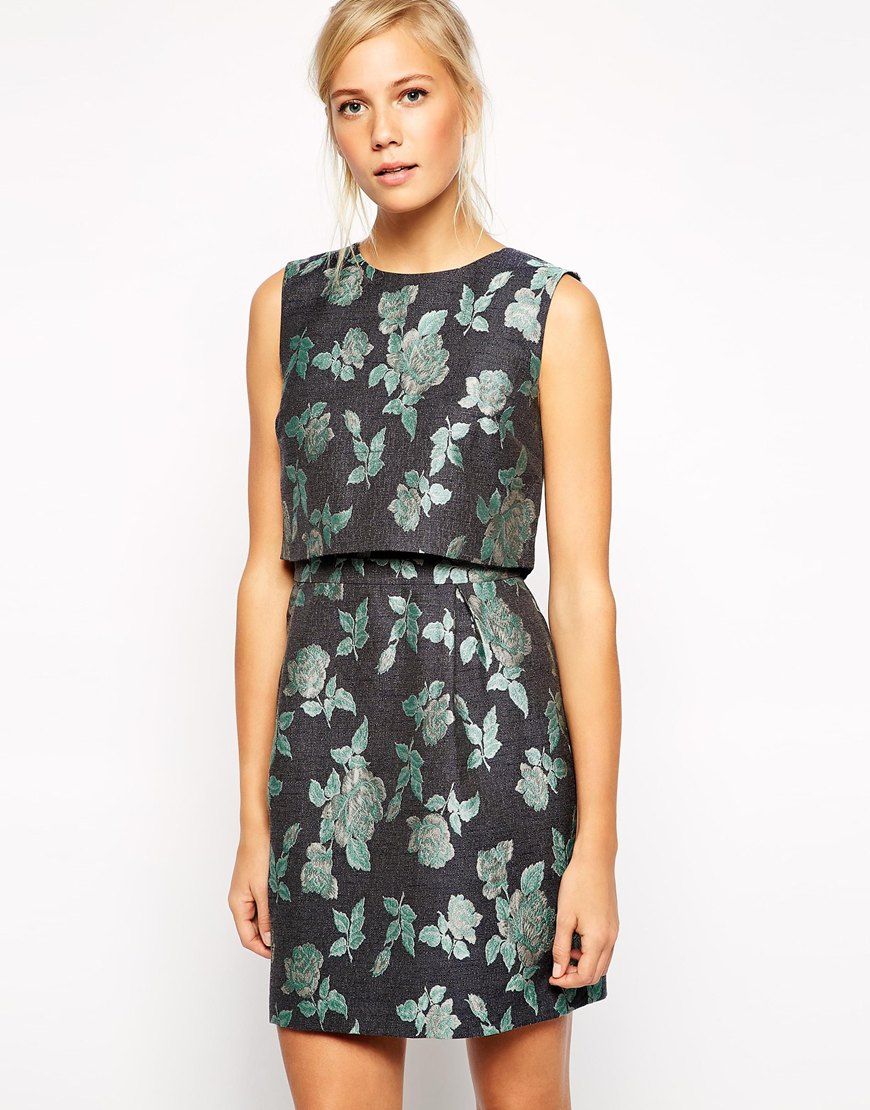• Oasis - Robe à motif roses hivernal en jacquard - Multi