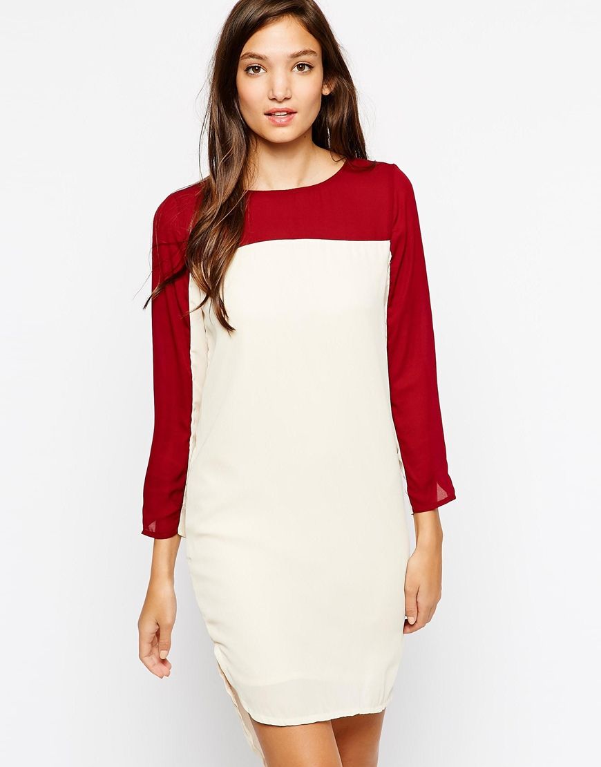 Paisie - Robe bicolore à manches longues - Bordeaux et crème