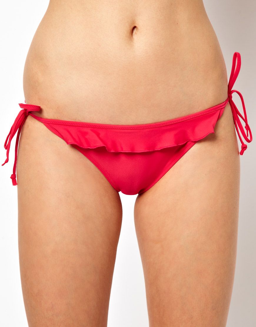 • Pureda - Bas de bikini à volants avec nouettes - Exclusivité ASOS - Framboise
