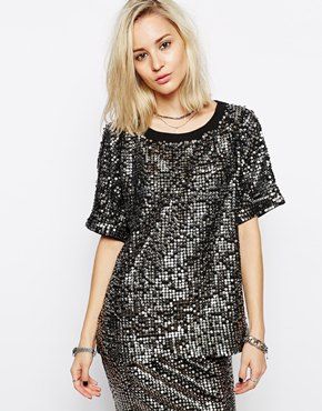 Achetez Religion - T-shirt orné de sequins sur, t-shirt Religion pour femme sur Pickture, dans les tendances sequins, ensemble, Noir