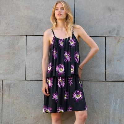 La petite robe volantée, indispensable, n'a pas fini de nous séduire avec son bel imprimé et ses jolies bretelles tressées... On aime la fluidité de la maille froide...FICHE SHOP...