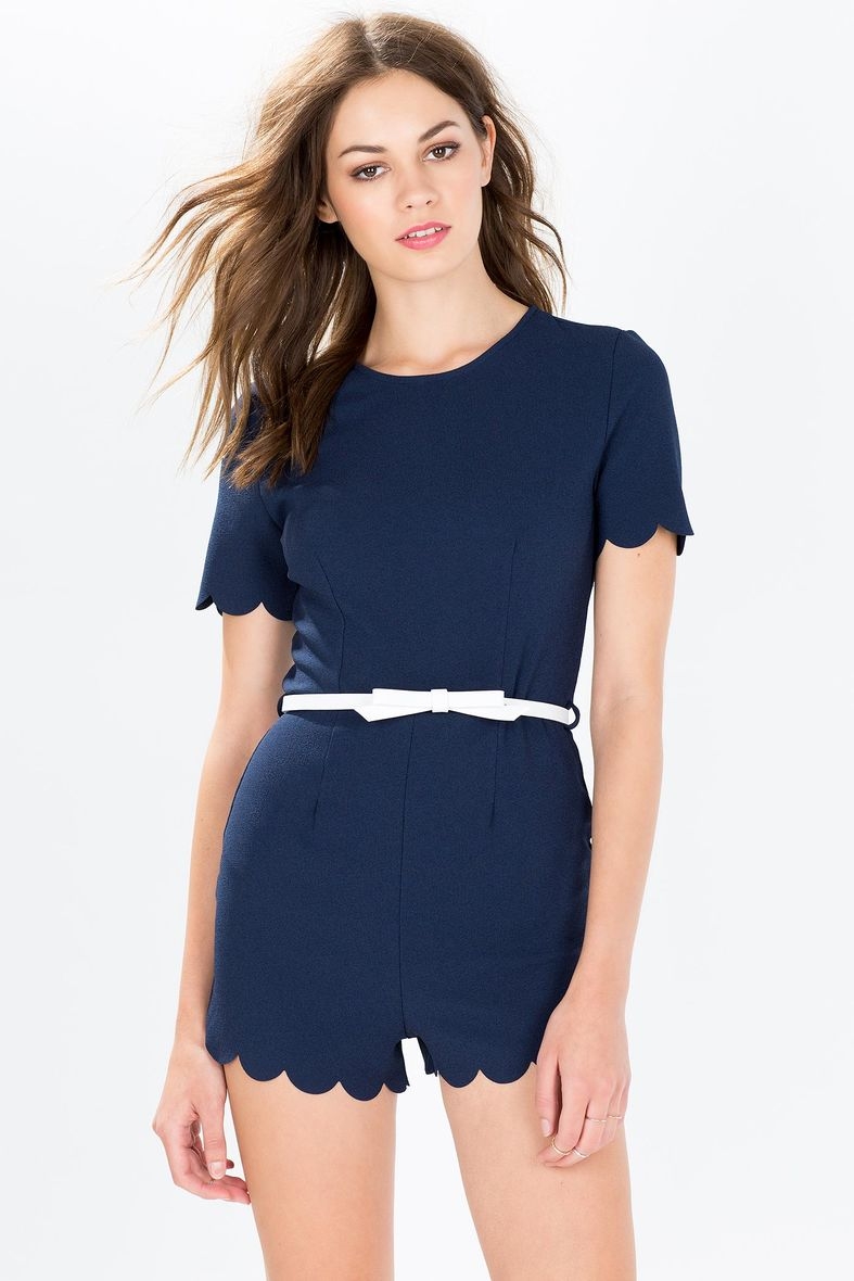 Achetez Scallop Hem Belted Romper, romper A'Gaci pour femme sur Pickture, dans les tendances Romper