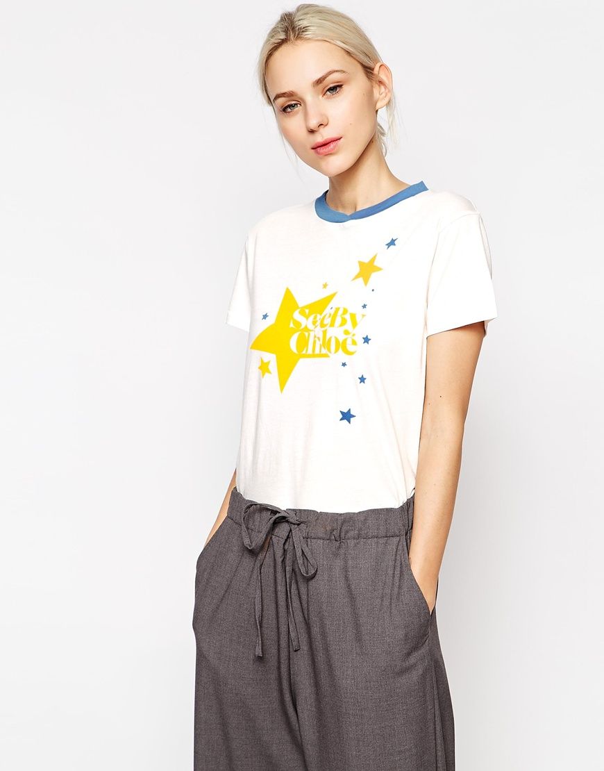 Achetez See by Chloe - T-shirt griffé à imprimé, t-shirt See by Chloe pour femme sur Pickture, dans les tendances Blanc