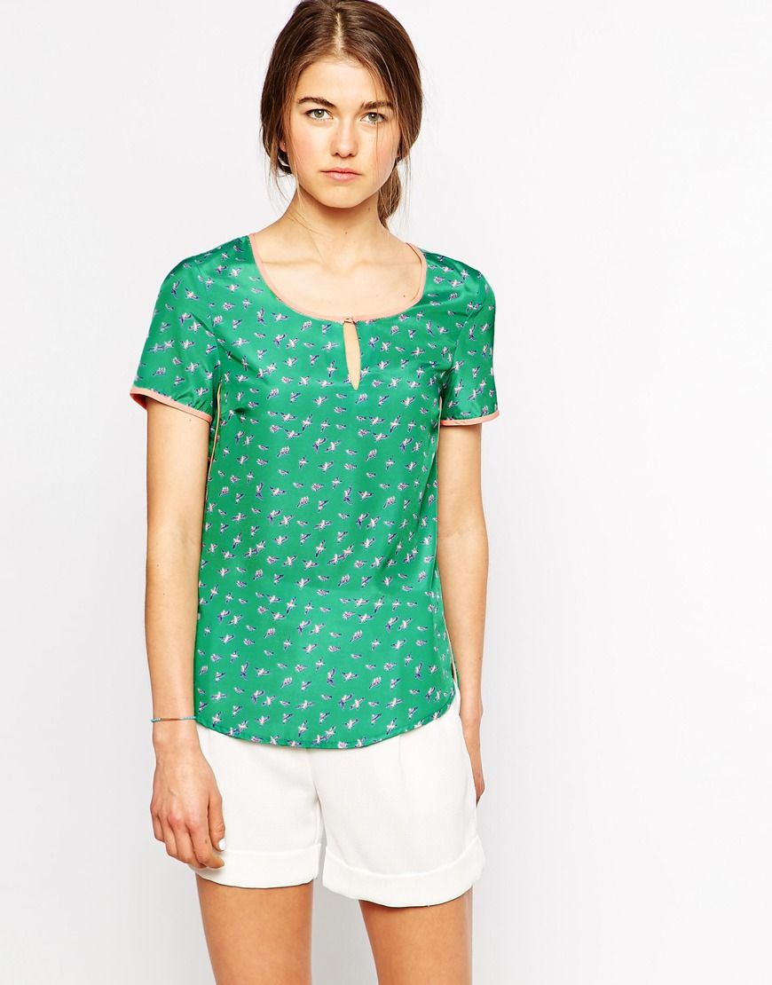 • See U Soon - Top imprimé oiseaux avec passepoils contrastants - Vert