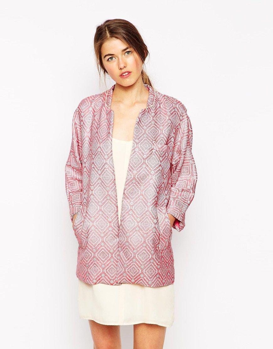• See U Soon - Veste sans col en jacquard à motif aztèque - Rose