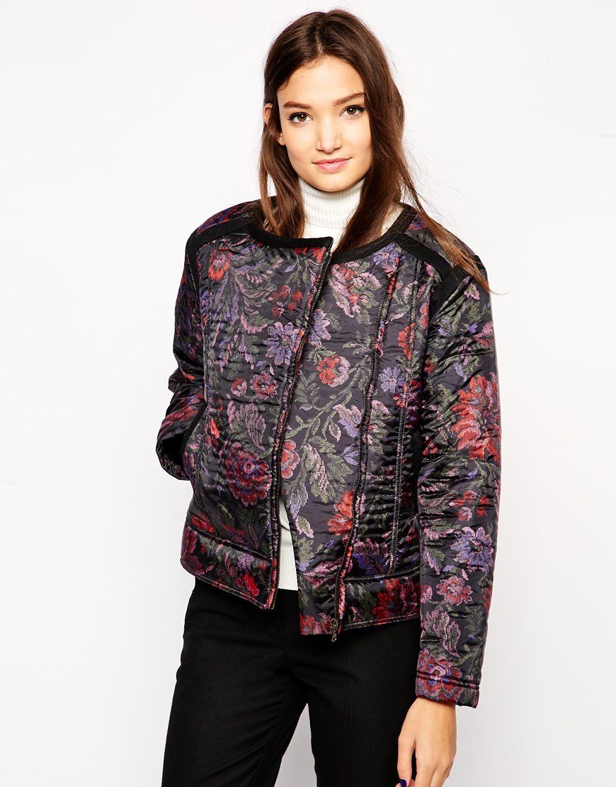 Sisley - - Blouson aviateur imprimé fleuri - Noir