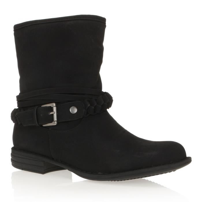 Bottes a la tige en synthétique doux avec brides et boucle de serrage fantaisie, coloris noir.