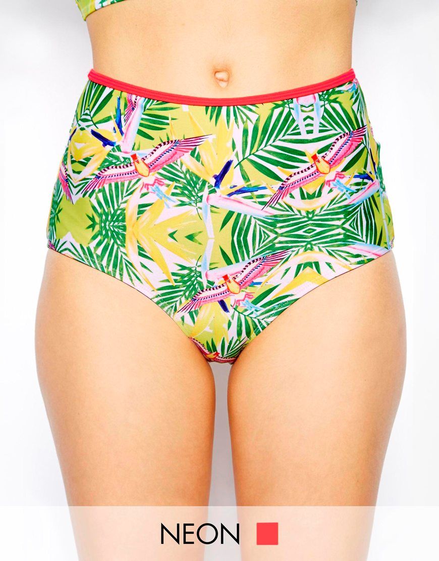 • South Beach - Super Nature - Bas de bikini taille haute à imprimé floral et oiseau de paradis avec bordure contrastante - Multi