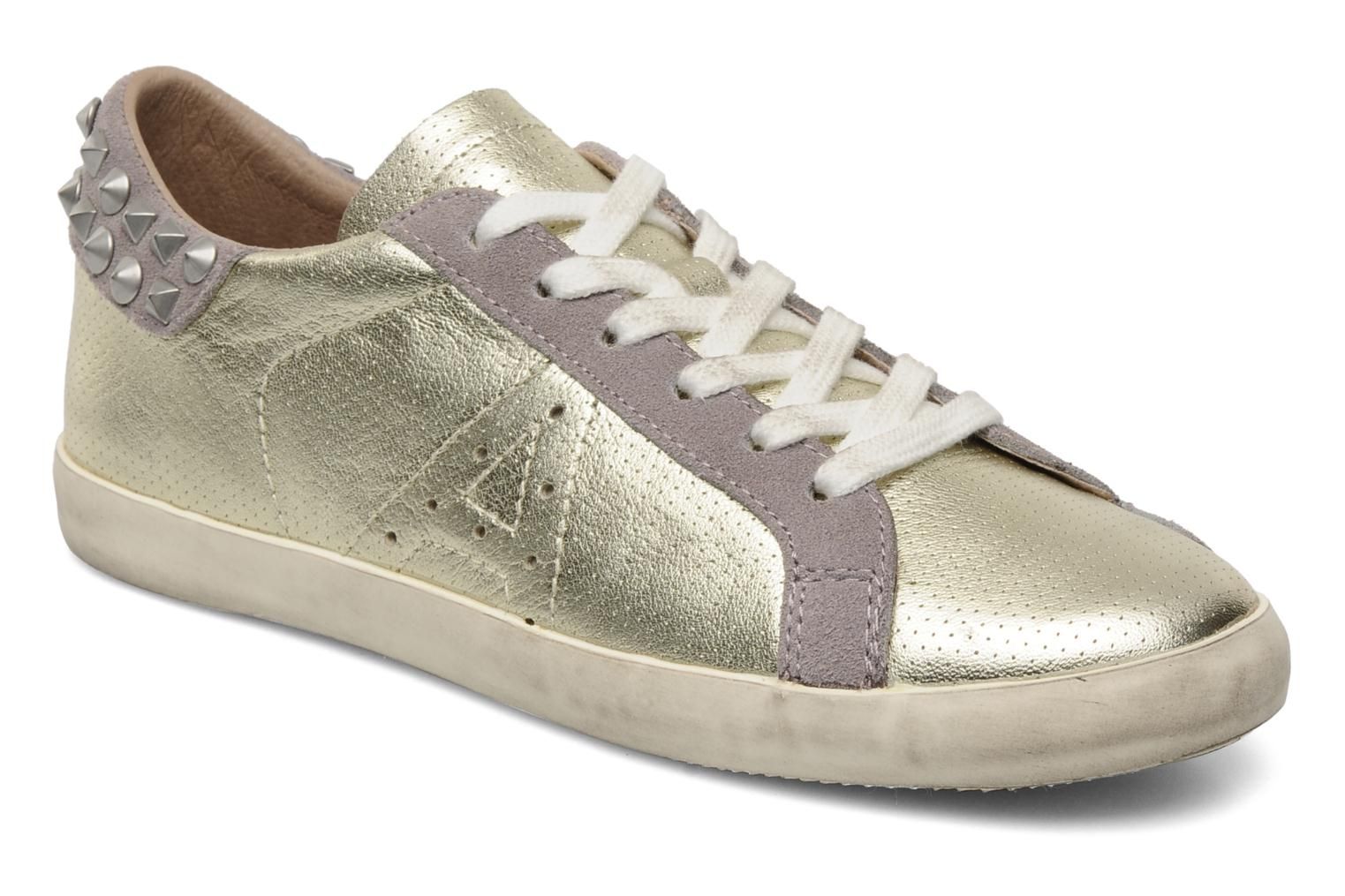 On entre dans le nouveau millénaire avec les baskets Spike Bis par Ash, et on admire leur robe dorée aérée et leur rangée de clous sur le talon! Les Ash Spike Bis aiment à se faire remarquer, pour notre plus grand plaisir! Baskets Ash Spike Bis pour femme, en cuir, à bout rond, à lacets (6 œillets), montées sur une semelle de gomme. La semelle intérieure est amovible.