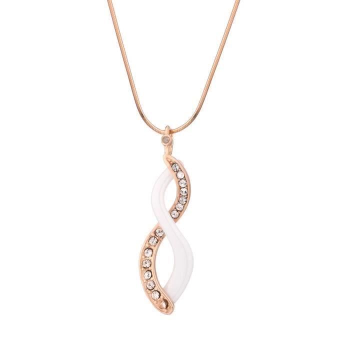 Pendentif en vermeil doré 925/1000 et en céramique de coloris blanc orné d'un diamant Gsi et de cristaux SWAROVSKI ELEMENTS blancs. Chaîne en vermeil 925/1000. Poids moyen du métal : 12 g