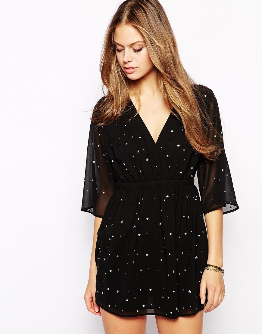 Supertrash - Dino - Robe style 70's à imprimé étoiles - Noir