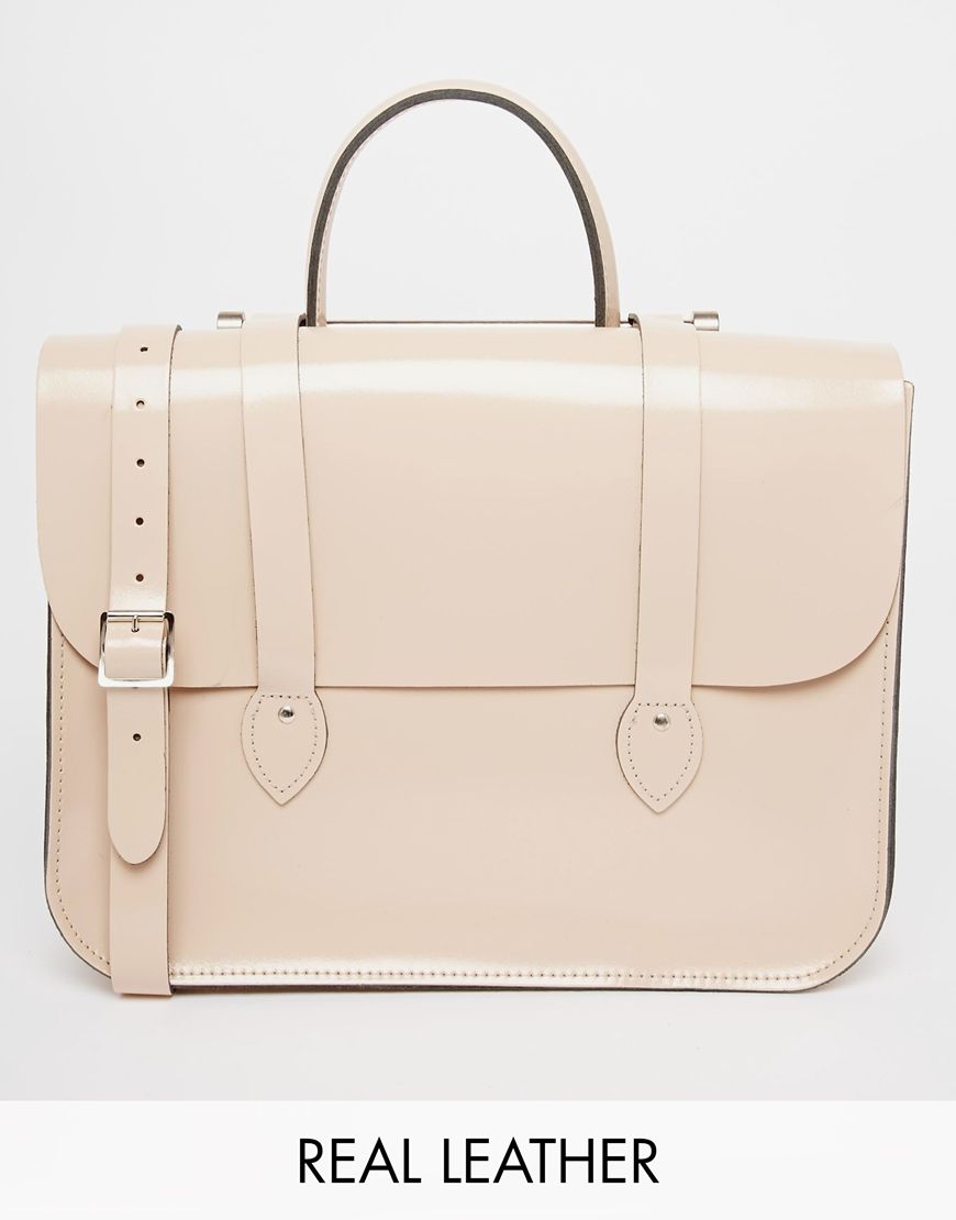 • The Leather Satchel Company - Fourre-tout avec barre en métal - Taupe verni