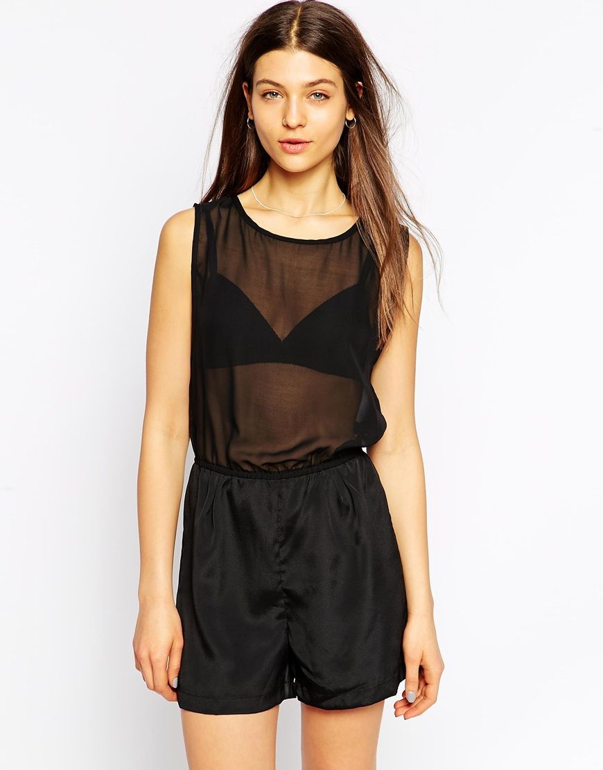 Tired Of Tokyo - Combishort à empiècements en tulle - Noir