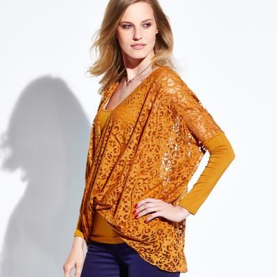 Achetez Top 2 en 1 bimatière encolure croisée manches ¾, top Votre Mode pour femme sur Pickture, dans les tendances Top
