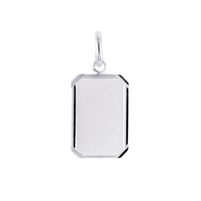 Ce pendentif est en Argent 925/00. Il s'agit d'une plaque que vous pourrez graver avec des initiales ou un message. Ses dimensions sont 1,2 x 2,7 cm. Bijou livré en écrin avec certificat d'authenticité et de garantie. Poids métal : 2,6 gr. Argent rhodié.