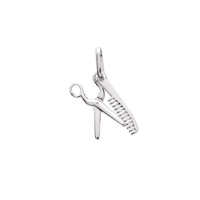 Une idée de pendentif original avec ce duo ciseau et peigne en Argent 925/00. Ses dimensions sont 1,5 x 2,2 cm. Bijou livré en écrin avec certificat d'authenticité et de garantie. Poids métal : 0,7 gr. Argent rhodié.