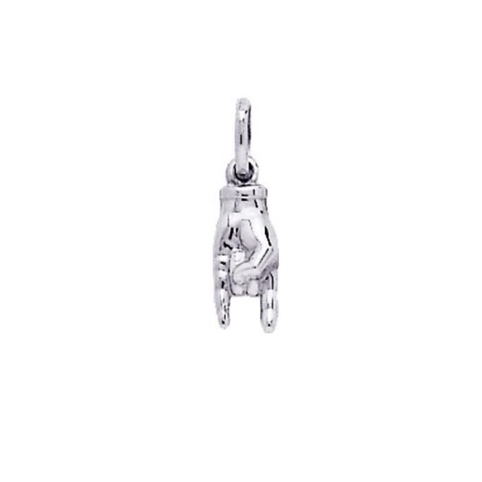 Ce pendentif en Argent 925/00 rhodié représente une main en forme de corne. Un symbole fort dans les pays latins, pour conjurer le mauvais sort. Une idée de cadeau originale, livré en écrin avec certificat d'authenticité et de garantie. Poids métal : 0,3 gr. Dimensions pendentif : 0,6 x 1,8 cm.