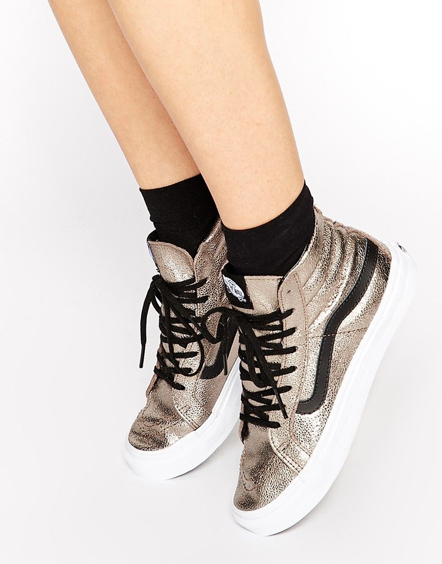 • Vans - Sk8-Hi - Baskets montantes et fines en cuir mĂ©tallisĂ© - Bronze