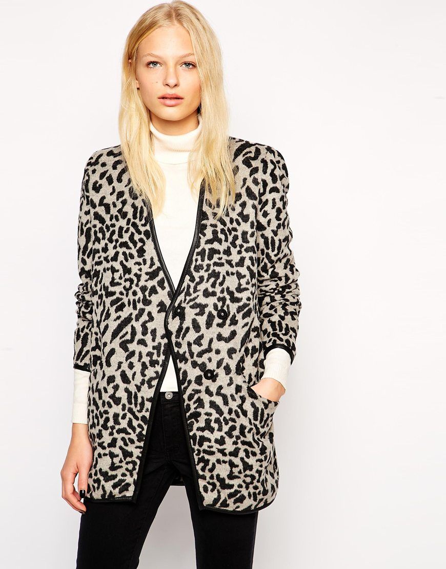 • Vila - Blazer long ajustĂ© doublĂ© Ă  imprimĂ© lĂ©opard