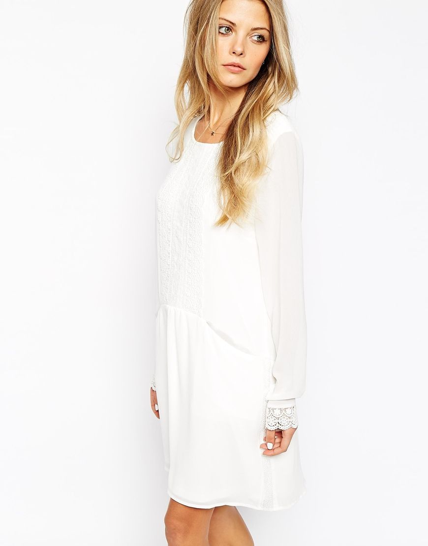 • Vila - Robe à manches longues ornées de dentelle - Blanc