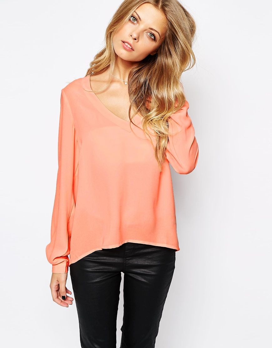 Top par Vila En tissu semi-transparent Encolure en V Manchettes à boutons Ourlet plongeant arrondi Coupe classique taillant normalement Lavage en machine 100% polyester Le mannequin porte l'article en taille UK 8 / EU 36 / US 4