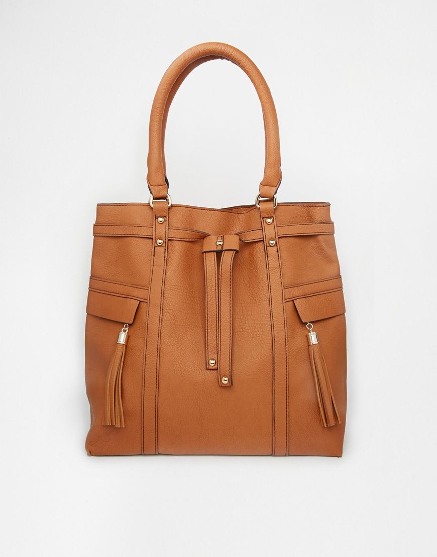 • Warehouse - Sac à main à détail frangé et fermeture éclair - Fauve