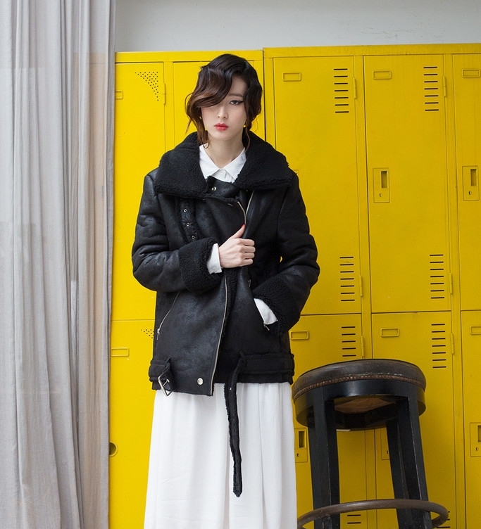 The whitepepper - Winter Sheepskin Biker Jacket Black