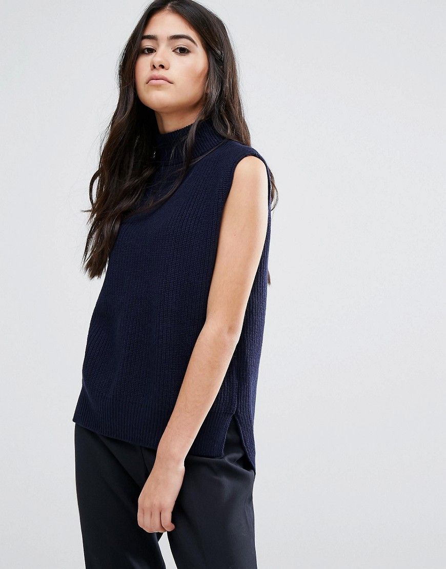 Pull par YMC, Maille 100% laine, Col montant, Coupe sans manches, Ourlet fendu sur les côtÃs, Coupe classique taillant normalement, Lavage à la main, 100% laine mÃrinos, Le mannequin porte l'article en taille UK S / EU S / US XS. Affichant une approche intelligente de la mode, la marque londonienne YMC propose des vêtements fonctionnels et branchÃs, se jouant des tendances pour privilÃgier la longÃvitÃ. Founded in 1995 by designers Fraser Moss and Jimmy Collins, YMC signifie « You Must Create » en anglais ; c'est la philosophie de la marque, inspirÃe par une citation de l'artiste graphique Raymond Loewy. Par son approche moderniste, YMC crÃe des motifs graphiques particuliers à travers une collection de modèles classiques faciles à porter. Attendez-vous à des silhouettes ÃpurÃes en jersey, de grosses mailles et des dÃtails fÃminins chics.
